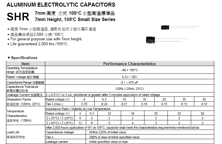 «85°C小型化 高度7mm 低漏電 SLR系列